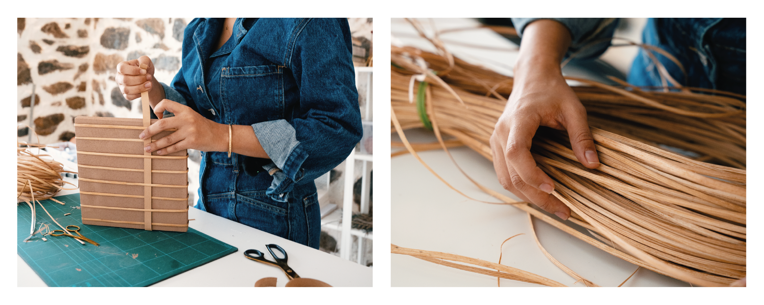 This collection is a new body of work centered on materiality and the act of weaving. The project explores the encounter and reaction between contrasting materials within a single composition, allowing difference to become structure and rhythm. It began with the combination of rattan from Ivory Coast, thin yet rigid, interlaced with Moroccan trimmings, soft and flexible, establishing a weaving system defined by tension and balance.